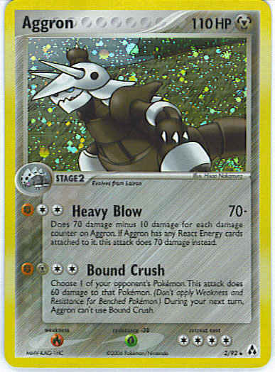 [CCF] Heavy Blow (70-) Does 70 damage minus 10 damage for each damage counter on Aggron. If Aggron has any React Energy cards attached to it, this attack does 70 instead.