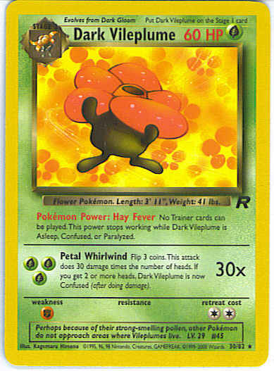 [GGG] Petal Whirlwind (30x) Flip 3 coins. This attack does 30 damage times the number of heads. If you get 2 or more heads, Dark Vileplume is now Confused (after dealing damage).