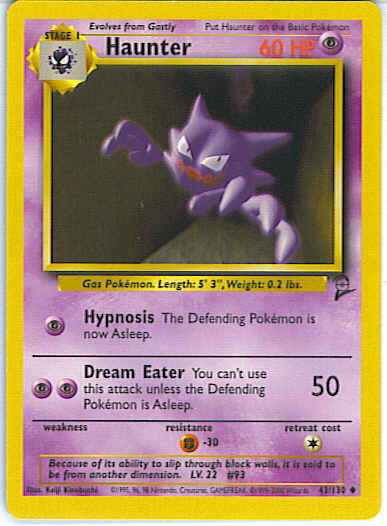 | Type | Psychic | | Pokemon serie | Base Set 2 | | Stadie | Stage 1 | | HP | 60 | | Sjældenhed | Uncommon | | Tilbagetrækning | 1 | | Modstand | F | | Kortnummer | 43 | | Evne |