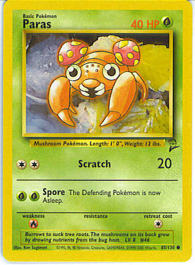 | Type | Grass | | Pokemon serie | Base Set 2 | | Stadie | Basic | | HP | 40 | | Sjældenhed | Common | | Tilbagetrækning | 1 | | Svaghed | R | | Kortnummer | 85 | | Evne |