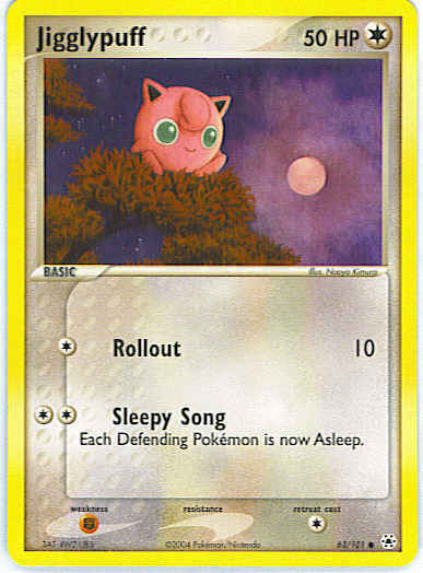 | Type | Colorless | | Pokemon serie | Hidden Legends | | Stadie | Basic | | HP | 50 | | Sjældenhed | Common | | Tilbagetrækning | 1 | | Svaghed | F | | Kortnummer | 63 | | Evne | [C] Rollout (10) [CC] Sleepy Song - Each Defending Pokemon is now Asleep. | | Evne2 | [C] Rollout (10) [CC] Sleepy Song - Each Defending Pokemon is now Asleep. | | Kunstner | Naoyo Kimura |