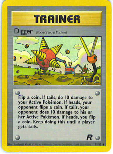 Evne Flip a coin. If tails, do 10 damage to your Active Pokemon. If heads, your opponent flips a coin. If tails, your opponent does 10 damage to his or her Active Pokemon. If heads, you flip a coin. Keep doing this until a player gets tails.