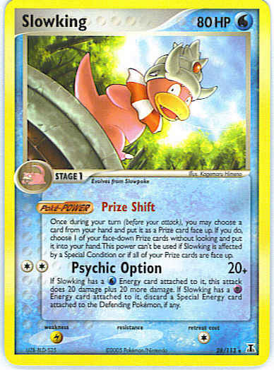 [CC] Psychic Option (20+) If Slowking has a W Energy card attached to it, this attack does 20 damage plus 20 more damage. If Slowking has a P Energy card attached to it, discard a Special Energy card attached to the Defending Pokemon, if any.