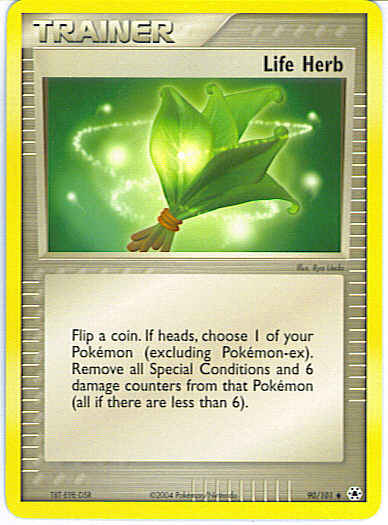 Flip a coin. If heads, choose 1 of your Pokemon (excluding Pokemon-ex). Remove all Special Conditions and 6 damage counters from that Pokemon (all if there are less than 6).