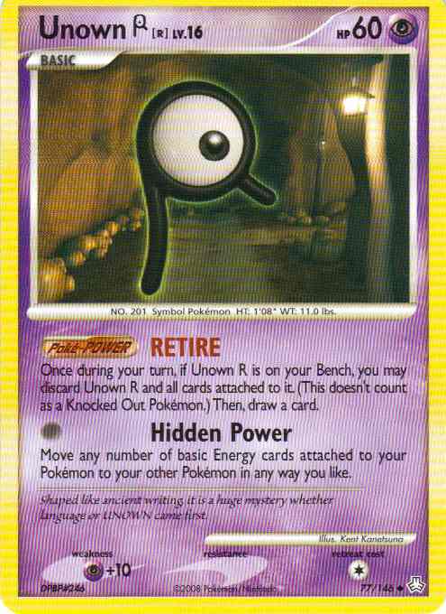 | Type | Psychic | | Pokemon serie | Legends Awakened | | Stadie | Basic | | HP | 60.0 | | Sjældenhed | Uncommon | | Tilbagetrækning | 1.0 | | Svaghed | P+10 | | Kortnummer | 77 | | Evne | [0] Hidden Power - Move any number of basic Energy cards attached to your Pokemon to your other Pokemon in any way you like.