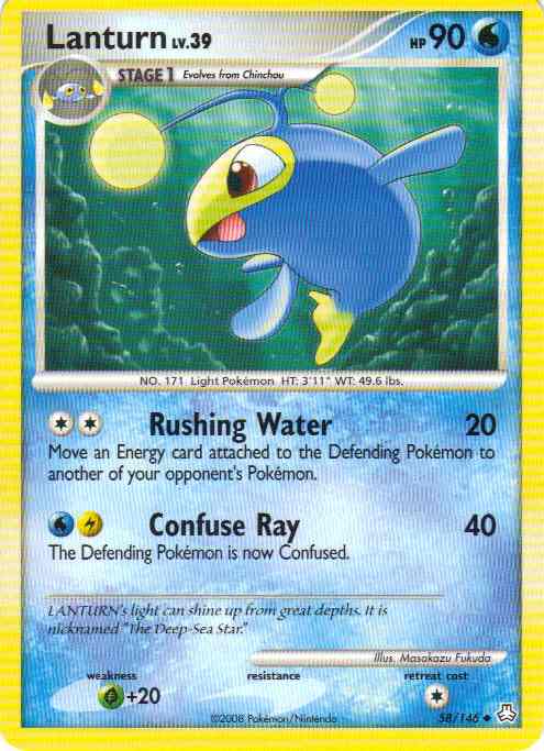 | Type | Water | | Pokemon serie | Legends Awakened | | Stadie | Stage 1 | | HP | 90.0 | | Sjældenhed | Uncommon | | Tilbagetrækning | 1.0 | | Svaghed | G+20 | | Kortnummer | 58 | | Evne |