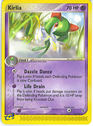 | | Evne2 | [C] Dazzle Dance - Flip a coin. If heads, each Defending Pokemon is now Confused. [P] Life Drain - Flip a coin. If heads, put damage counters on the Defending Pokemon until it is 10 HP away from being Knocked Out.