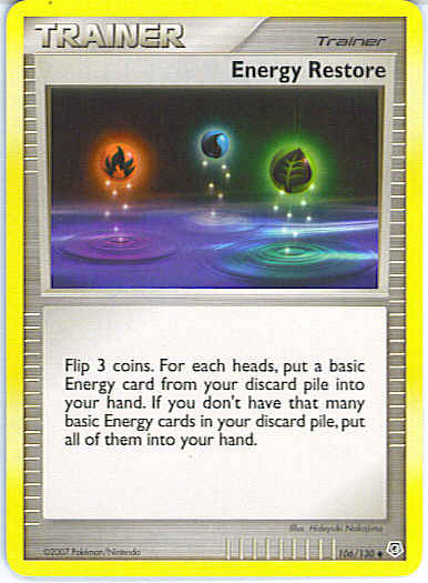 Flip 3 coins. For each heads, put a basic Energy card from your discard pile into your hand. If you don't have that many basic Energy cards in your discard pile, put all of them into your hand.
