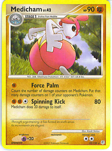 [F] Force Palm - Count the number of damage counters on Medicham. Put that many damage counters on 1 of your opponent's Pokemon.