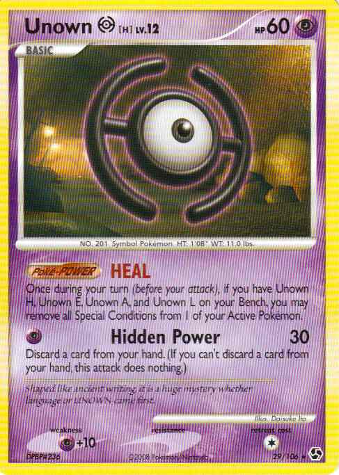 | Type | Psychic | | Pokemon serie | Great Encounters | | Stadie | Basic | | HP | 60.0 | | Sjældenhed | Rare | | Tilbagetrækning | 1.0 | | Svaghed | P+10 | | Kortnummer | 29 | | Evne | [P] Hidden Power (30) Discard a card from your hand. (If you can't discard a card from your hand, this attack does nothing.)