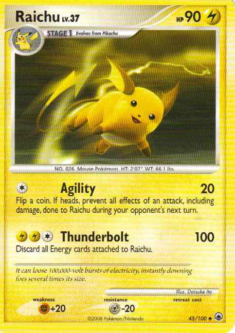 [C] Agility (20) Flip a coin. If heads, prevent all effects of an attack, including damage, done to Raichu during your opponent's next turn.