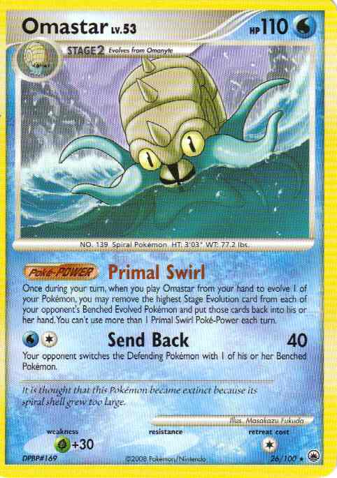 | Type | Water | | Pokemon serie | Majestic Dawn | | Stadie | Stage 2 | | HP | 110.0 | | Sjældenhed | Rare | | Tilbagetrækning | 1.0 | | Svaghed | G+30 | | Kortnummer | 26 | | Evne |