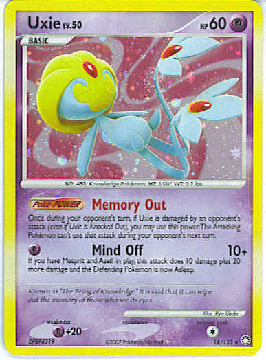[P] Mind Off (10+) If you have Mesprit and Azelf in play, this attack does 10 damage plus 20 more damage and the Defending Pokemon is now Asleep.