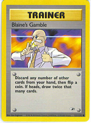 Discard any number of other cards from your hand, then flip a coin. If heads, draw twice that many cards.