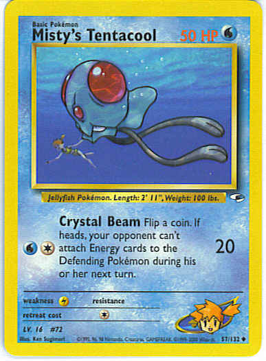 | Type | Water | | Pokemon serie | Gym Heroes | | Stadie | Basic | | HP | 50 | | Sjældenhed | Uncommon | | Tilbagetrækning | 1 | | Svaghed | L | | Kortnummer | 57 | | Evne |