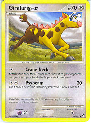 | Type | Colorless | | Pokemon serie | Mysterious Treasures | | Stadie | Basic | | HP | 70 | | Sjældenhed | Uncommon | | Tilbagetrækning | 1 | | Svaghed | P+20 | | Kortnummer | 49 | | Evne |