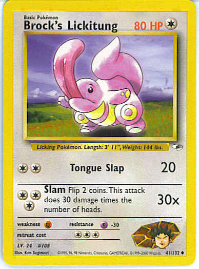 | Type | Colorless | | Pokemon serie | Gym Heroes | | Stadie | Basic | | HP | 80 | | Sjældenhed | Uncommon | | Tilbagetrækning | 3 | | Modstand | P | | Svaghed | F | | Kortnummer | 41 | | Evne |