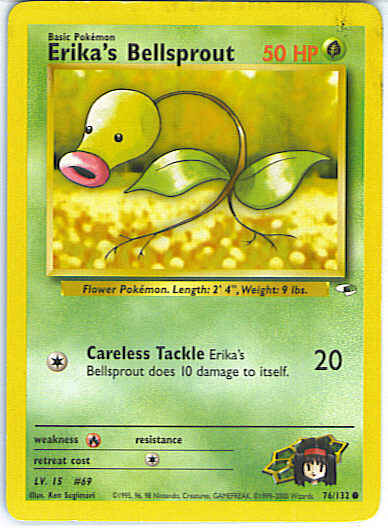 [C] Careless Tackle (20) Erika's Bellsprout does 10 damage to itself.