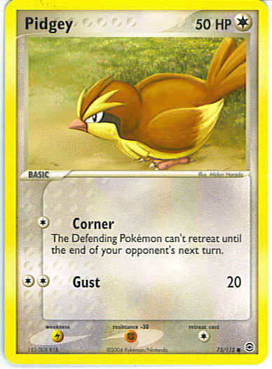 | Type | Colorless | | Pokemon serie | Fire Red Leaf Green | | Stadie | Basic | | HP | 50 | | Sjældenhed | Common | | Tilbagetrækning | 1 | | Modstand | F | | Svaghed | L | | Kortnummer | 73 | | Evne | [C] Corner - The Defending Pokemon can't retreat until the end of your opponent's next turn. [CC] Gust (20) | | Evne2 | [C] Corner - The Defending Pokemon can't retreat until the end of your opponent's next turn. [CC] Gust (20) | | Kunstner | Midori Harada |