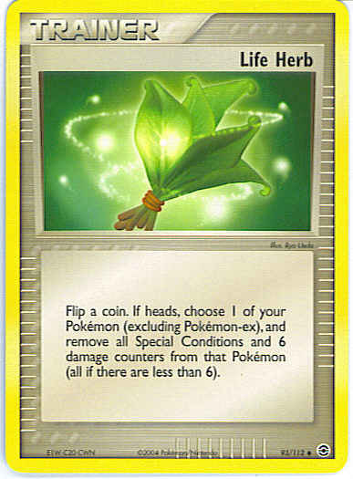 Flip a coin. If heads, choose 1 of your Pokemon (excluding Pokemon-ex) and remove all Special Conditions and 6 damage counters from that Pokemon (all if there are less than 6).