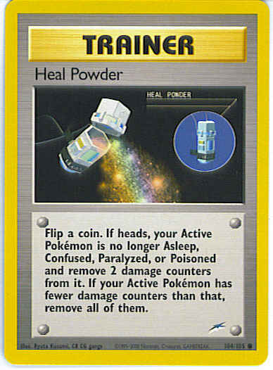 Flip a coin. If heads, remove 2 damage counters from your Active Pokemon, and that Pokemon is no longer Asleep, Confused, Paralyzed or Poisoned.
