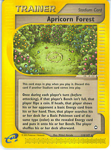 | Type | Trainer | | Pokemon serie | Aquapolis | | Stadie | Trainer (Stadium) | | Sjældenhed | Rare | | Kortnummer | 118 | | Evne |