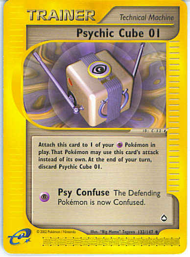 | Type | Trainer | | Pokemon serie | Aquapolis | | Stadie | Trainer (Technical Machine) | | Sjældenhed | Uncommon | | Kortnummer | 132 | | Evne |