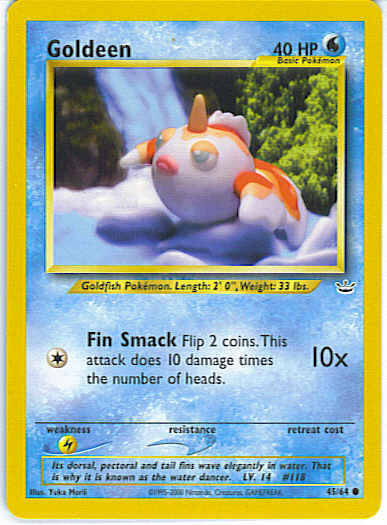 | Type | Water | | Pokemon serie | Neo Revelation | | Stadie | Basic | | HP | 40 | | Sjældenhed | Common | | Svaghed | L | | Kortnummer | 45 | | Evne |