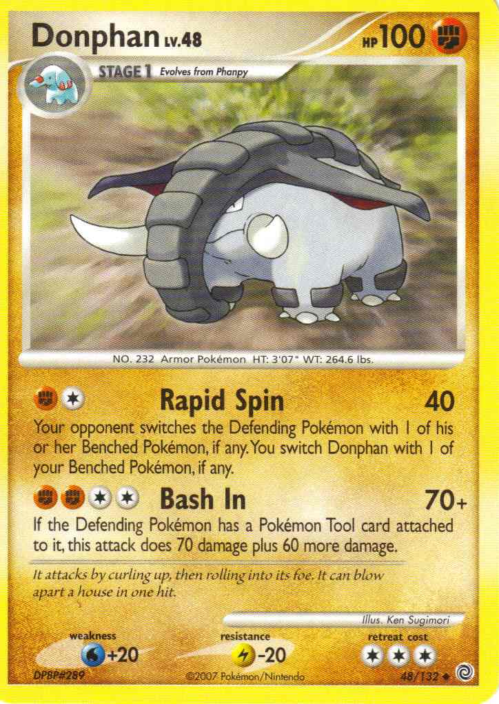 [CF] Rapid Spin (40) Your opponent switches the Defending Pokemon with 1 of his or her Benched Pokemon, if any. You switch Donphan with 1 of your Benched Pokemon, if any.