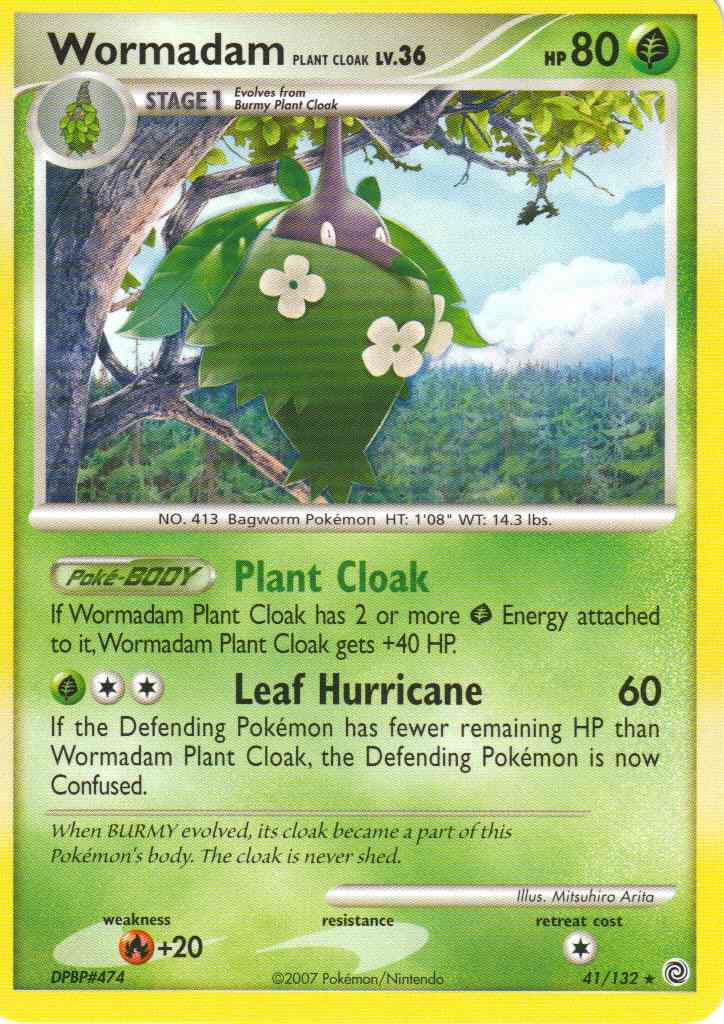 [CCG] Leaf Hurricane (60) If the Defending Pokemon has fewer remaining HP that Wormadam Plant Cloak, the Defending Pokemon is now Confused.