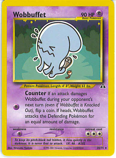 [P] Counter - If an attack damages Wobbuffet during your opponent's next turn (even if Wobbuffet is knocked out), flip a coin. If heads, Wobbuffet attacks the Defending Pokemon for an equal amount of damage.