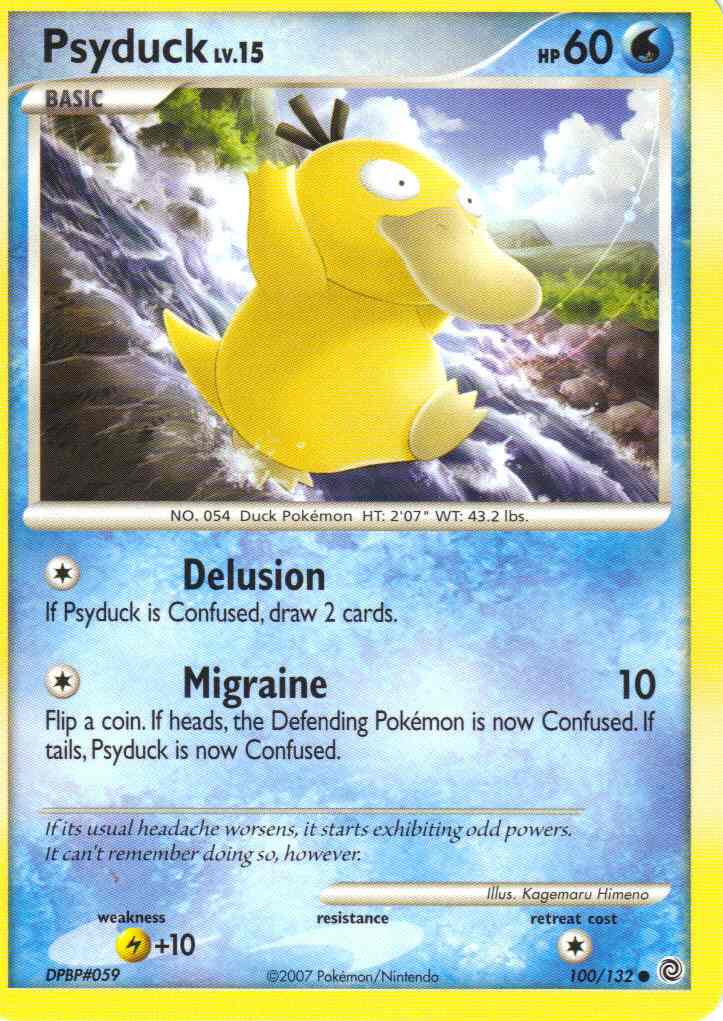 [C] Migraine (10) Flip a coin. If heads, the Defending Pokemon is now Confused. If tails, Psyduck is now Confused.