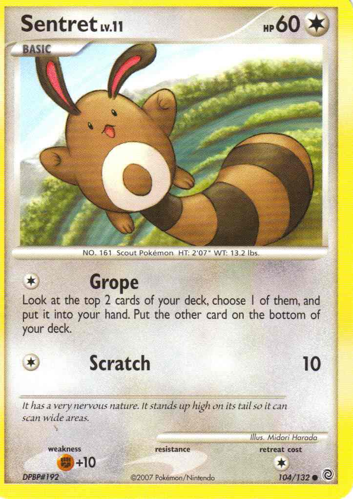 | Type | Colorless | | Pokemon serie | Secret Wonders | | Stadie | Basic | | HP | 60.0 | | Sjældenhed | Common | | Tilbagetrækning | 1.0 | | Svaghed | F+10 | | Kortnummer | 104 | | Evne |