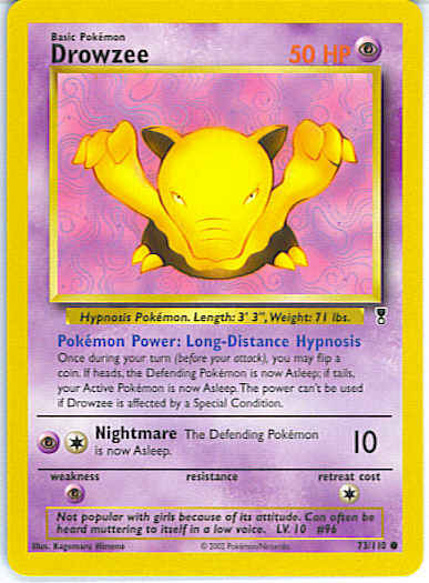 | Type | Psychic | | Pokemon serie | Legendary Collection | | Stadie | Basic | | HP | 50 | | Sjældenhed | Common | | Svaghed | P | | Kortnummer | 73 | | Evne |