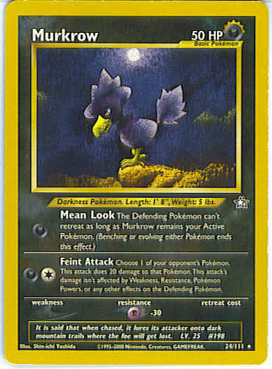 [D] Mean Look - The Defending Pokemon can't retreat as long as Murkrow remains your Active Pokemon. (Benching or evolving either Pokemon ends this effect.)