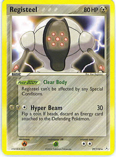 | Type | Metal | | Pokemon serie | Holon Phantoms | | Stadie | Basic | | HP | 80 | | Sjældenhed | Rare | | Tilbagetrækning | 1 | | Modstand | G | | Svaghed | R | | Kortnummer | 29 | | Evne |